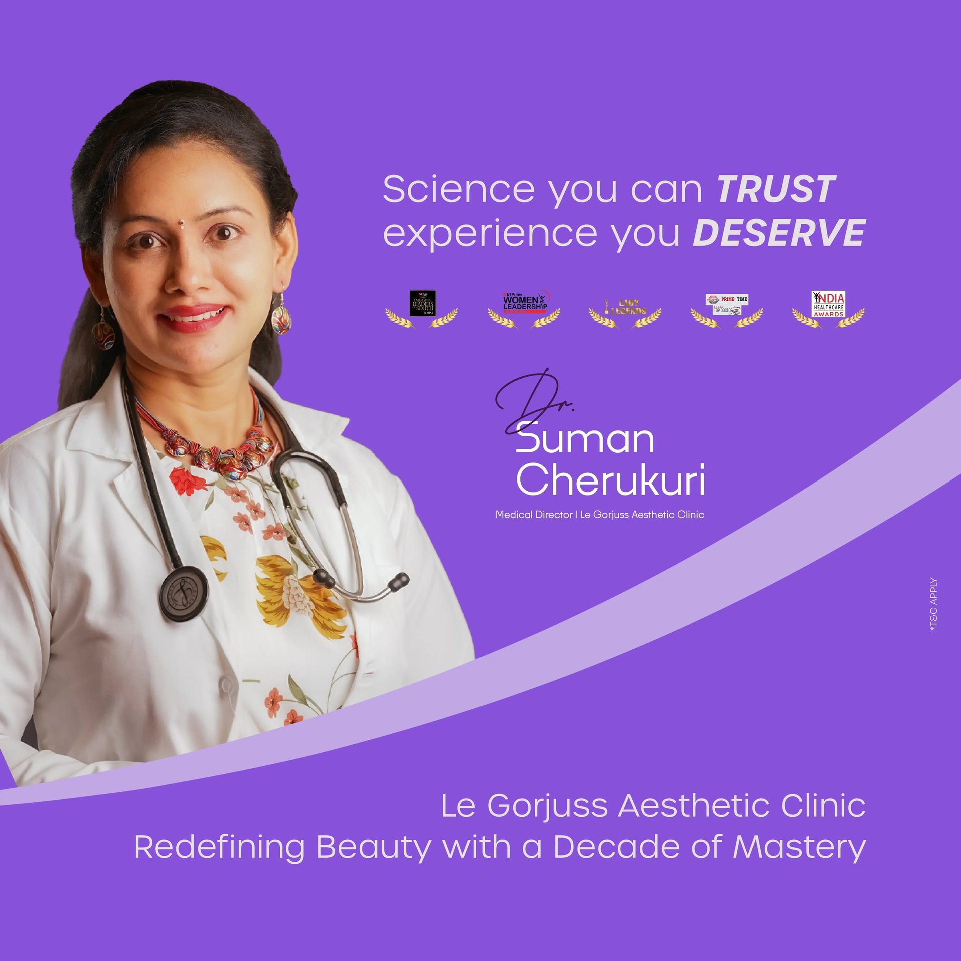 Dr. Suman, internationally trained with over a decade of experience in England, specializes in minimally invasive aesthetic treatments. At Le Gorjuss, Hyderabad, she offers advanced surgical & non-surgical procedures delivering natural results with minimal downtime.